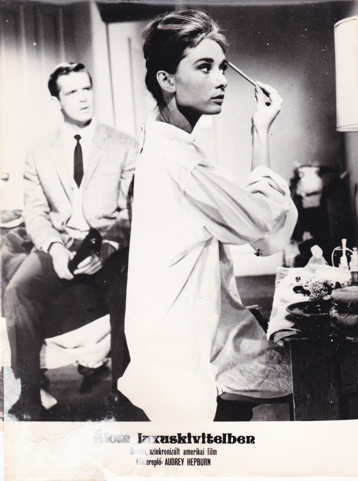 Sleeping in late is the result of her riotous party the night before where she almost burnt down her apartment with her cigarette holder. Darling Fred, George Peppard, came to the rescue just in time.